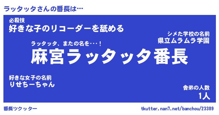 | ヒーロー風カッコイイあだ名 | 『スーパーラッタッタ』『黄金騎士ラッ』 |
