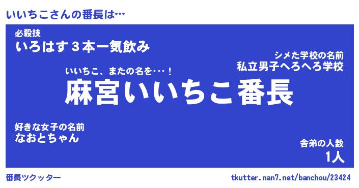 | ヒーロー風カッコイイあだ名 | 『スーパーイイチコ』『黄金騎士イイ』 |