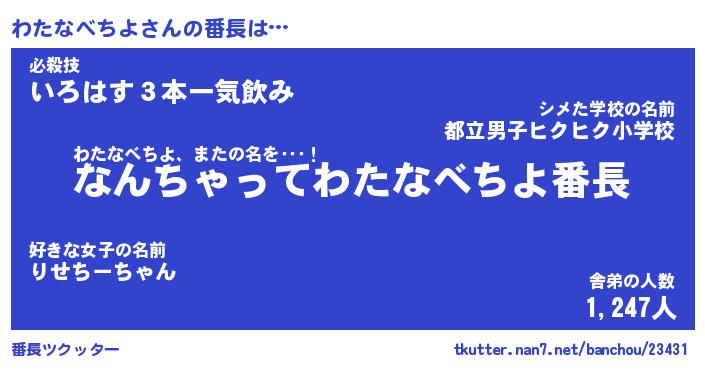 | ピコ太郎風あだ名 | 『ワコ六郎』『ピワ五郎』『ワタ八郎』 |