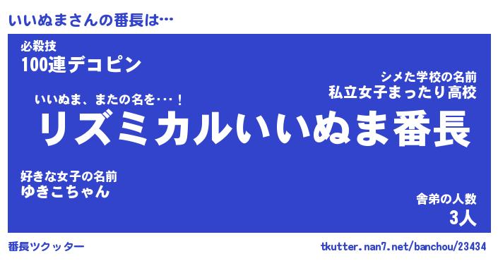 | 意味不明あだ名 | 『ペロリンいいぬま』『永久保存いいぬま』 |