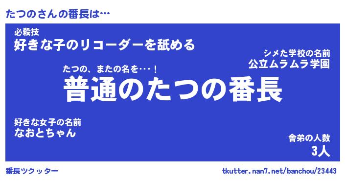 | ヒーロー風カッコイイあだ名 | 『スーパータツノ』『ウルトラたつのマン』 |