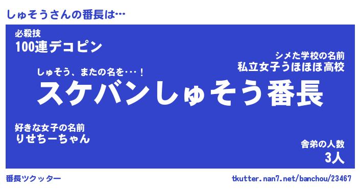 | ヘコむあだ名 | 『しゅにー』『つくし』『しゅお』 |