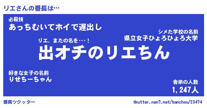 | 肩書あだ名 | 『リエ社長』『リエ総理大臣』 |