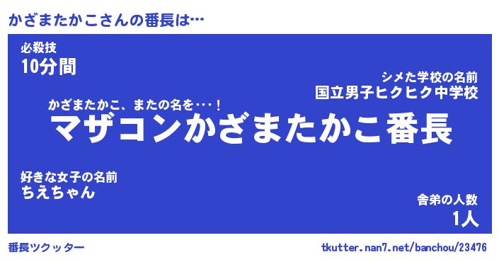 | 伝説のあだ名 | 『封印されしスナイパーかざまたかこ』 |