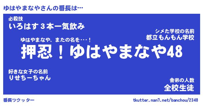 | 肩書あだ名 | 『ゆはやまなや御曹司』 |