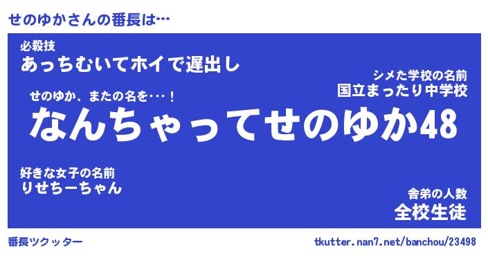 | 意味不明あだ名 | 『ペロリンせのゆか』『永久保存せのゆか』 |