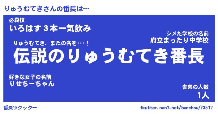 | 男性向けラノベタイトル風あだ名 | 『りゅうむてきの憂鬱』 |