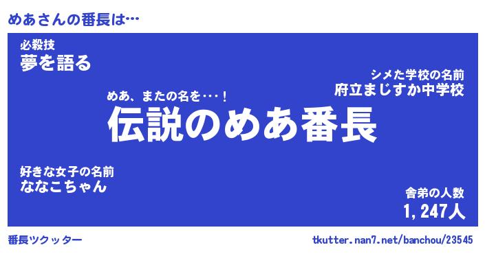 | 2回繰り返すあだ名 | 『めあめあ』『めめああ』『にたにた』 |