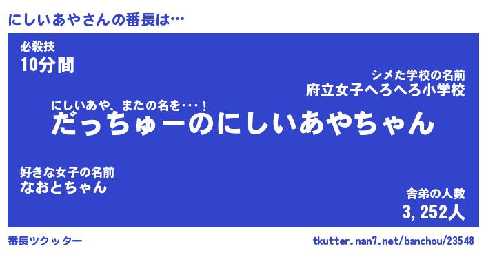 | 肩書あだ名 | 『にしいあや社長』『にしいあや総理大臣』 |