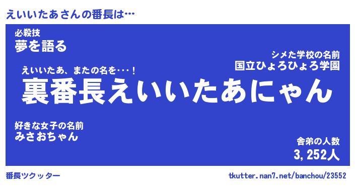 | ヘコむあだ名 | 『えいもー』『豆乳』『えいぷりん』 |