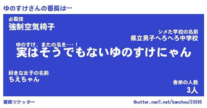 | 意味不明あだ名 | 『ペロリンゆのすけ』『永久保存ゆのすけ』 |