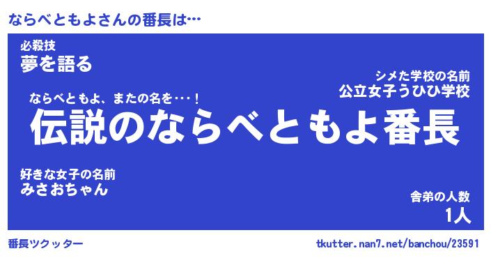 | ヒーロー風カッコイイあだ名 | 『スーパーナラベトモヨ』『黄金騎士ナラ』 |