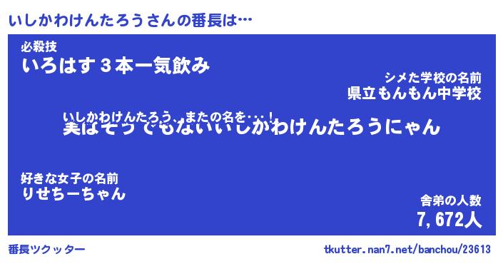 | 肩書あだ名 | 『いしかわけんたろう御曹司』 |