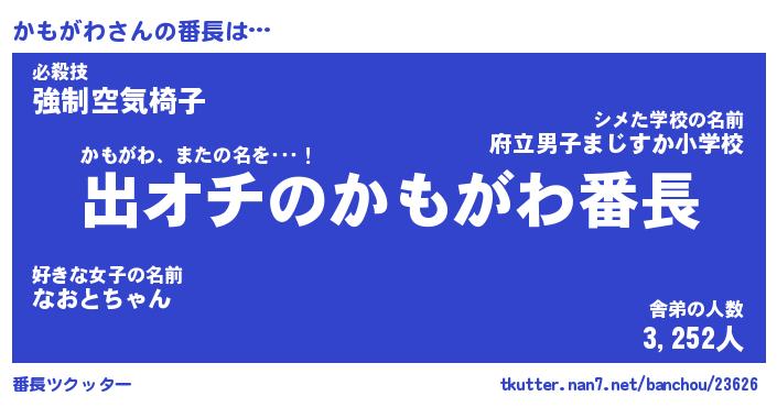 | 伝説のあだ名 | 『伝説のスナイパーかもがわ』 |