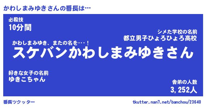 | ヒーロー風カッコイイあだ名 | 『スーパーカワシマミユキ』 |