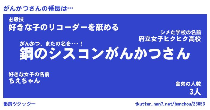 | 肩書あだ名 | 『がんかつ店長』『がんかつ国家主席』 |