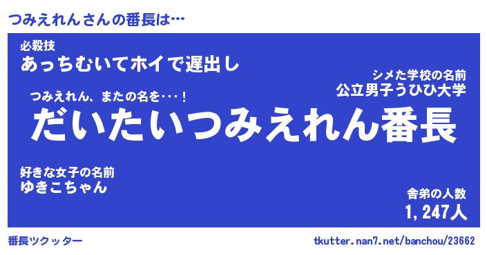 | ファンタジー風あだ名 | 『ツミフェル』『エターナルツミエレンー』 |