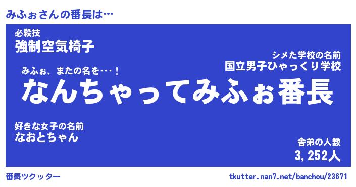 | 肩書あだ名 | 『みふぉ御曹司』『みふぉ国家主席』 |