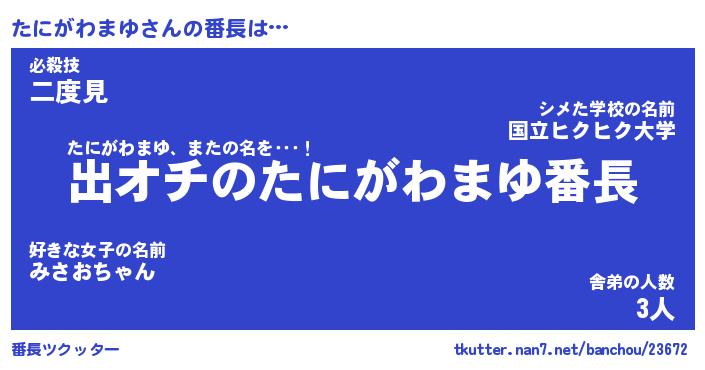 | ヒーロー風カッコイイあだ名 | 『スーパータニガワマユ』『魔戒騎士タニ』 |