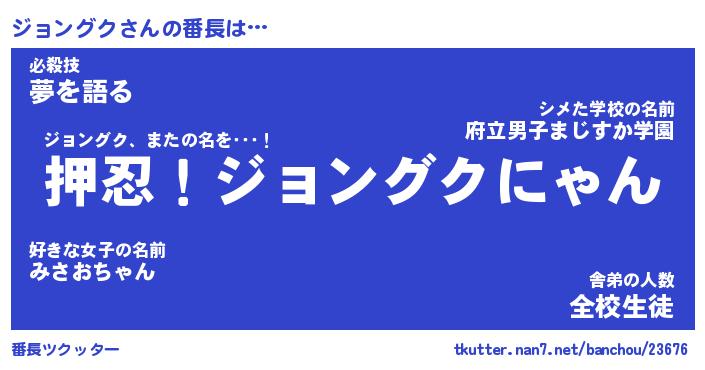 | 料理風あだ名 | 『ネギたっぷりジョングクの南蛮漬け』 |