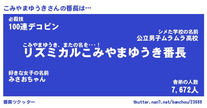 | 伝説のあだ名 | 『伝説のスナイパーこみやまゆうき』 |