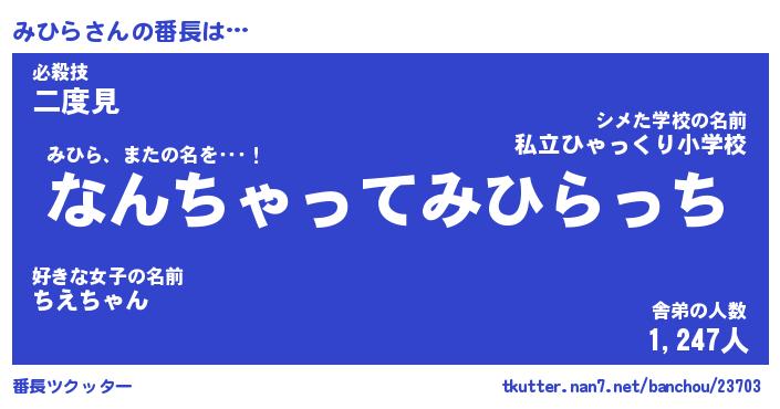 | ヒーロー風カッコイイあだ名 | 『スーパーミヒラ』『ウルトラみひらマン』 |