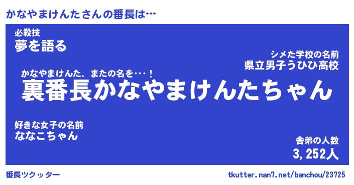 | 伝説のあだ名 | 『不死鳥のスナイパーかなやまけんた』 |