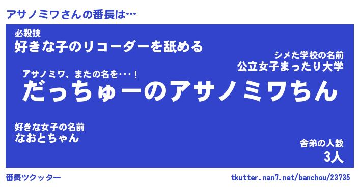 | 意味不明あだ名 | 『ペロリンアサノミワ』 |