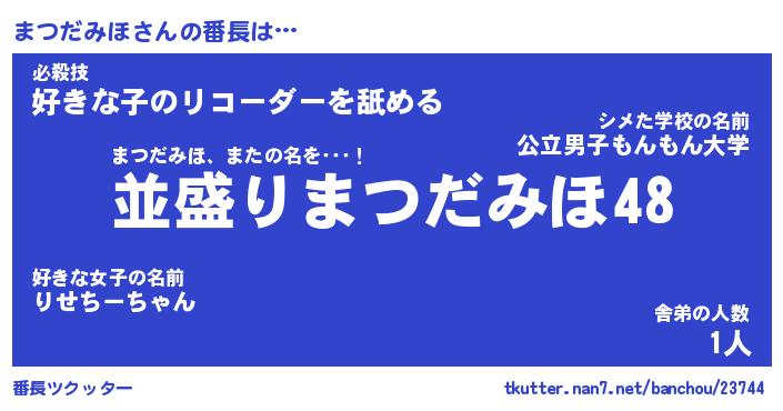 | ヘコむあだ名 | 『まつにゅー』『なまこ酢』『まつお』 |