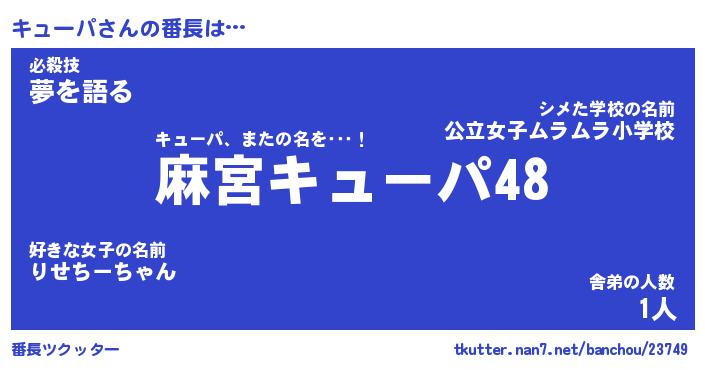 | 意味不明あだ名 | 『ペロリンキューパ』『永久保存キューパ』 |