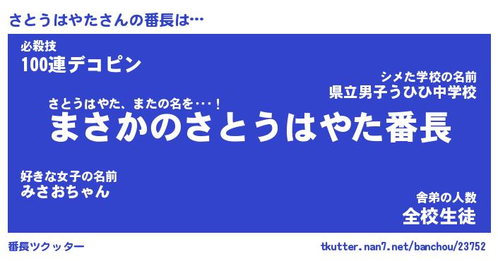 | ヒーロー風カッコイイあだ名 | 『スーパーサトウハヤタ』『天弓騎士サト』 |