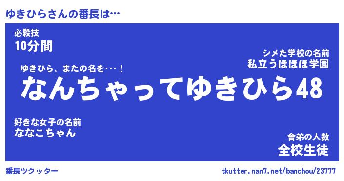 | ヒーロー風カッコイイあだ名 | 『スーパーユキヒラ』『炎刃騎士ユキ』 |