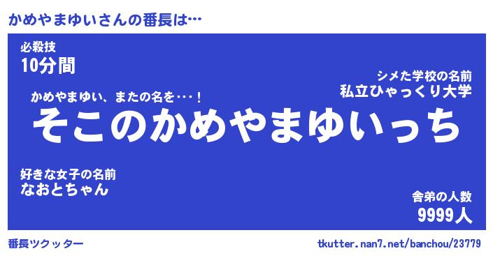 | ヒーロー風カッコイイあだ名 | 『スーパーカメヤマユイ』『魔戒騎士カメ』 |