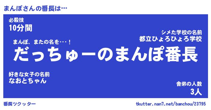 | ピコ太郎風あだ名 | 『マコ四郎』『ピマ一郎』『マン六郎』 |