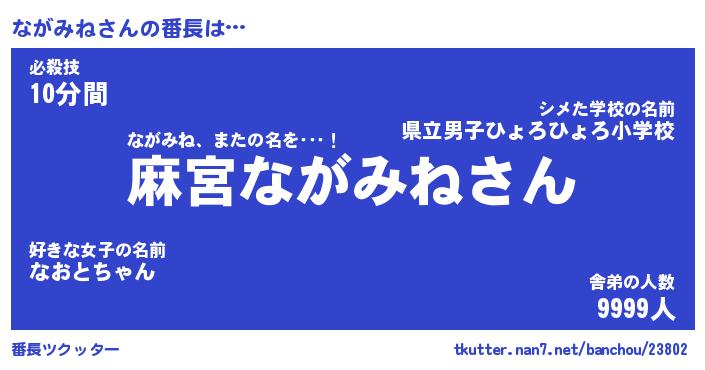 | 意味不明あだ名 | 『ペロリンながみね』『永久保存ながみね』 |