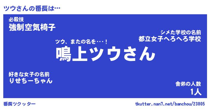 | 意味不明あだ名 | 『ペロリンツウ』『ツウフォーエバー』 |