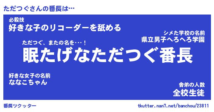 | ヘコむあだ名 | 『ただふぇ~』『なまこ酢』 |