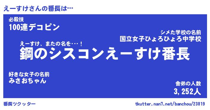 | 意味不明あだ名 | 『ペロリンえーすけ』『永久保存えーすけ』 |