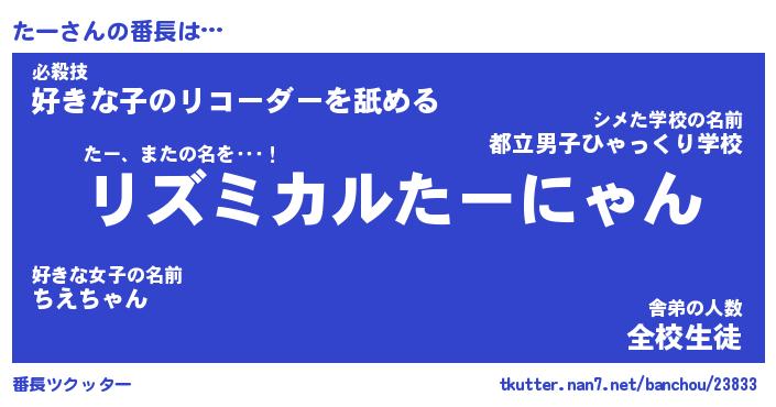 | 伝説のあだ名 | 『伝説の竜騎士たー』『最強の陰陽師たー』 |