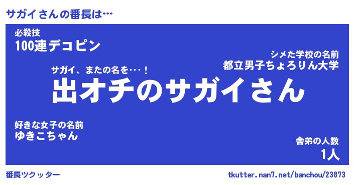 | ヒーロー風カッコイイあだ名 | 『スーパーサガイ』『ウルトラサガイマン』 |