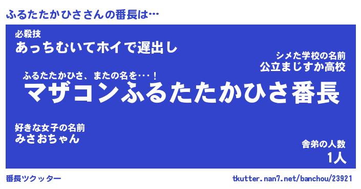 | ヒーロー風カッコイイあだ名 | 『スーパーフルタタカヒサ』 |