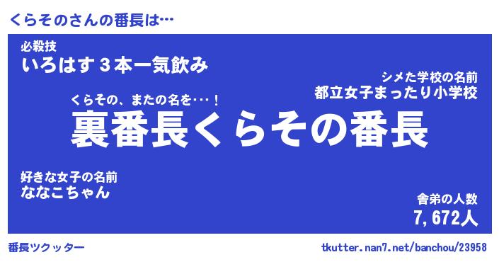 | 肩書あだ名 | 『くらその店長』『くらその総理大臣』 |