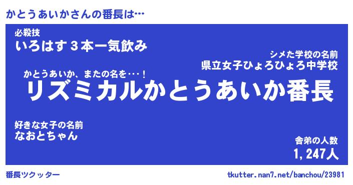 | 肩書あだ名 | 『かとうあいか店長』『かとうあいか塾長』 |