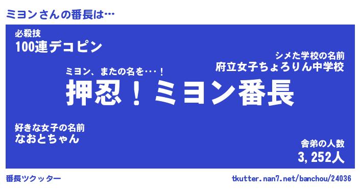 | ピコ太郎風あだ名 | 『ミコ次郎』『ピミ太郎』『ミヨ四郎』 |