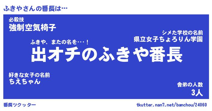 | 肩書あだ名 | 『ふきや店長』『ふきや国家主席』 |