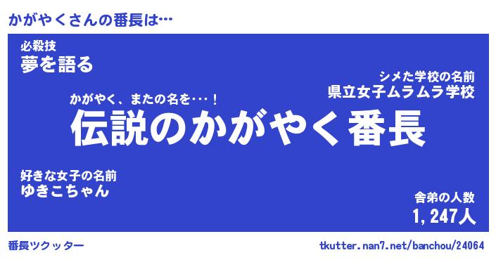 | 意味不明あだ名 | 『ペロリンかがやく』『永久保存かがやく』 |