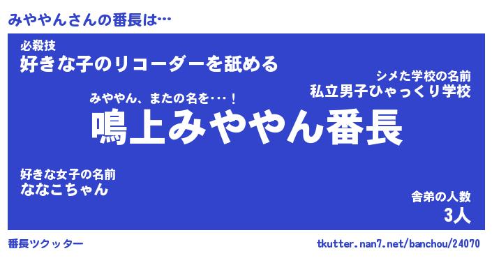 | ヒーロー風カッコイイあだ名 | 『スーパーミヤヤン』『魔戒騎士ミヤ』 |