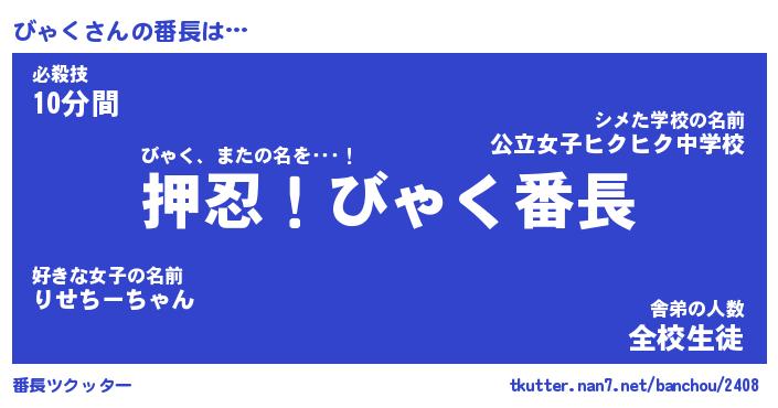 | ヒーロー風カッコイイあだ名 | 『スーパービャク』『ウルトラびゃくマン』 |