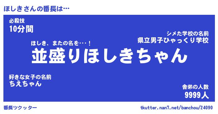 | ヒーロー風カッコイイあだ名 | 『スーパーホシキ』『ウルトラほしきマン』 |