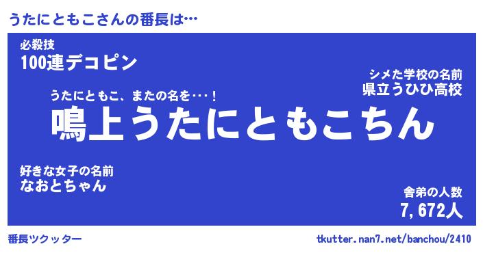 | 男性向けラノベタイトル風あだ名 | 『ウタニトモコアートオンライン』 |
